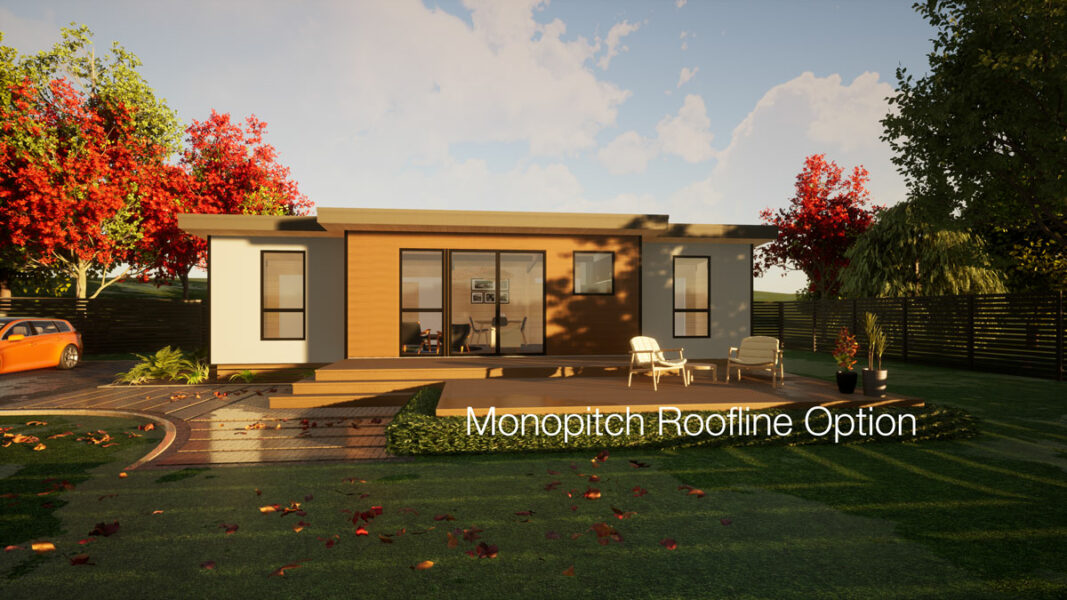 The Teoteo is a smart little home that looks and feels much bigger than its footprint. At the heart is a light-filled open-plan living area, with two spacious bedrooms on either side. Handy extras like a separate toilet, storage, and laundry are neatly tucked away at the back. There is the option of a split gable roofline, adding architectural flair to this compact home.